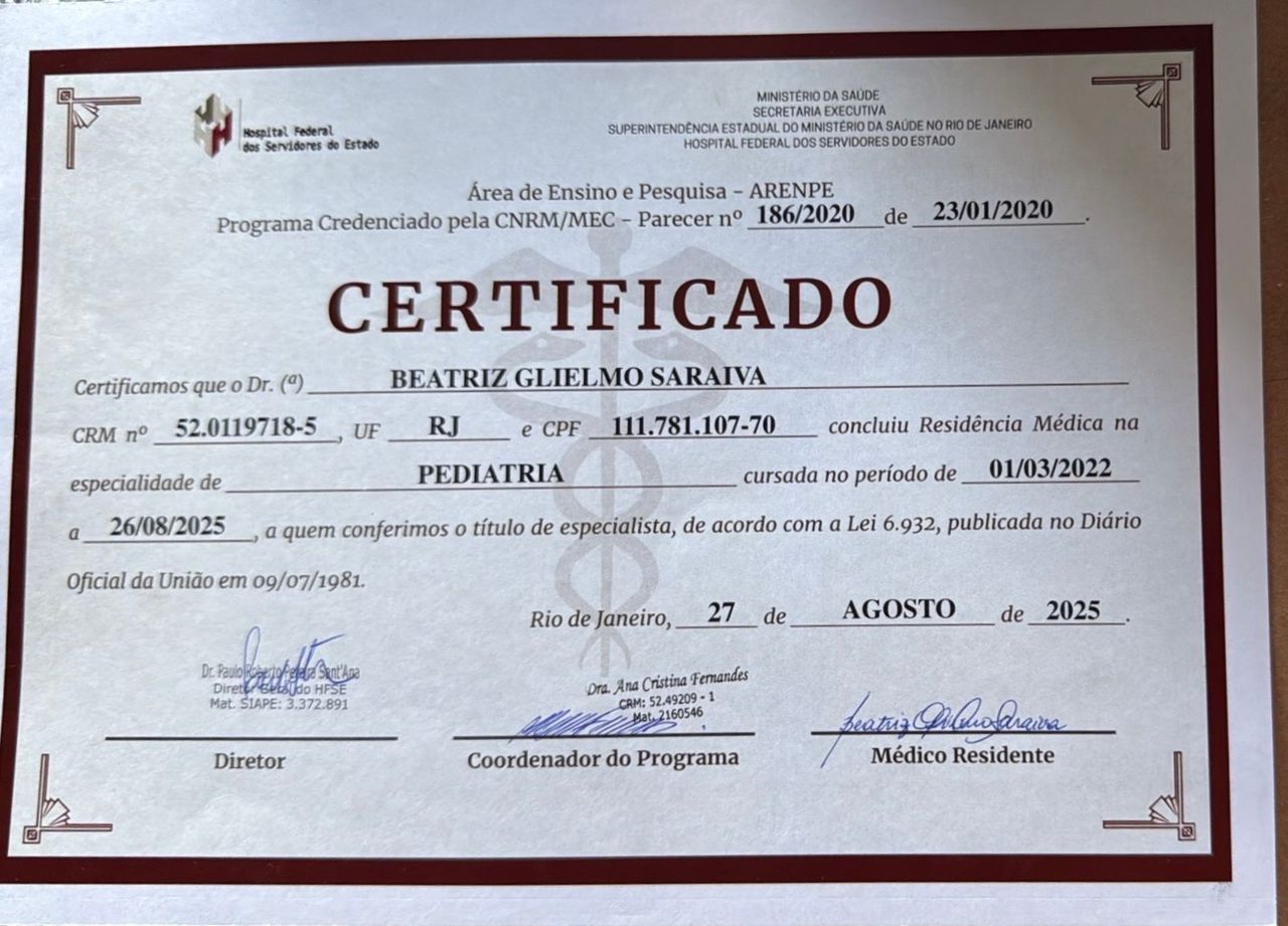 Tenho 3 filhos e a consulta com a Dra Beatriz foi com meu mais novo, e posso afirmar até agora foi a melhor pediatra que já levei um filho meu super profissional atenciosa e carinhosa gostei!!
